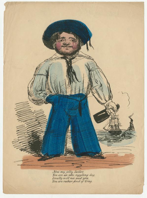 Text: Now my jolly Sailor, / You are an idle, tippling dog, / O really will not wed you, / You are rather fond of Grog.