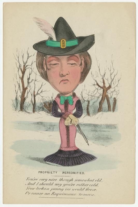 Text: You’re very nice though somewhat old, / And I should say you’re rather cold, / Your looks a penny ice would freeze, / Or cause an Esquimaux to sneeze.