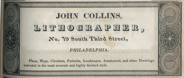 1833, Collins entered the lithography profession in Philadelphia in 1836. From 1836 to 1837, Collins established his own print