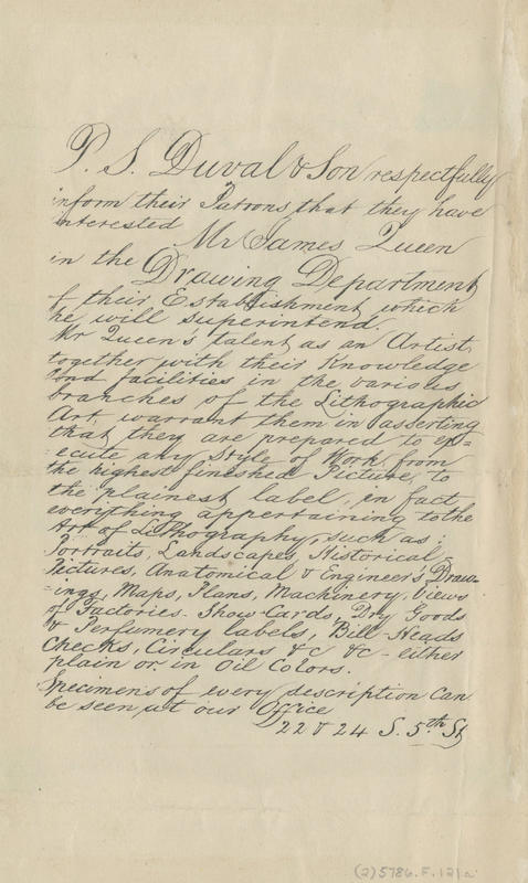 Trained as a lithographer in France, Duval brought much needed expertise to Childs & Inman, one of the first commercial Philadelphia