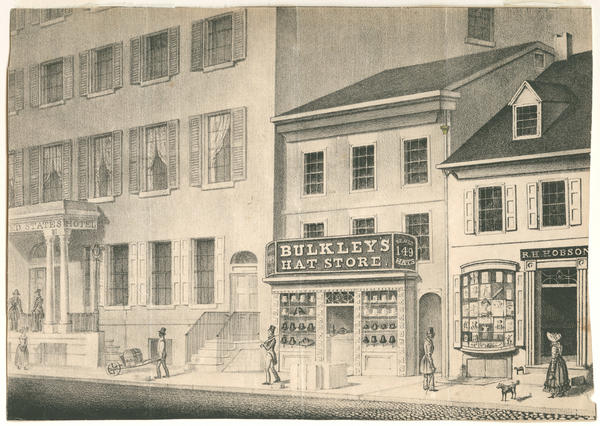 Richard H. Hobson, born in England in the ca. 1780s, was an antebellum-era Philadelphia fancy, stationery, and print store proprietor who published in 1832 the unique, morphed lithographic view of the Philadelphia Bank. The print titled "Horizantorium" was lithographed by J. J. Barker after the drawing of William Mason. Hobson worked as a merchant in Philadelphia by 1823 and operated a fancy and print store from 147 (i.e., 400 block) Chestnut Street from the late 1820s to ca. 1835. He also published engravings, sheet music, books, and portraiture, often with engraver and lithographer Cephas G. Childs in the 1830s.