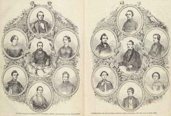 Picture gallery of portraits of publisher, editor, and several of our well-known contributors for The Pictorial drawing-room companion, and The Flag of the Union.