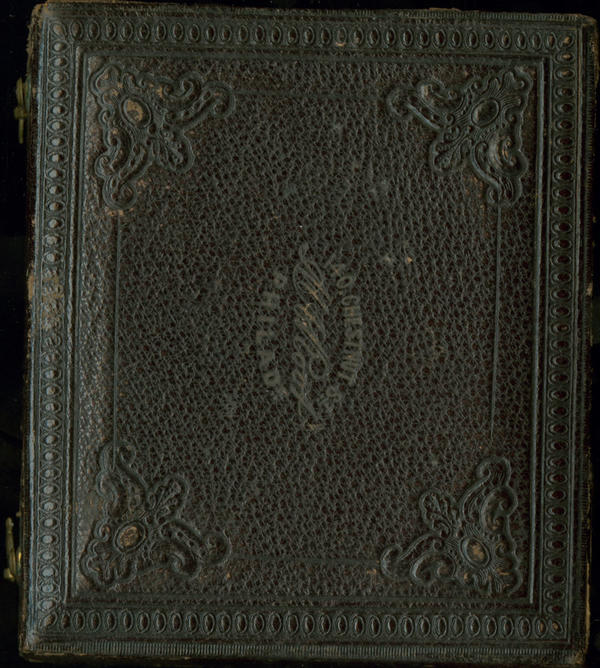 Case: Leather. Geometric designs at each corner. No design in center. Photographer's imprint stamped on verso: M. A. Root,