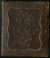 Case: Leather. Mixed bouquet of flowers within nonpareil border. Geometric design on verso.