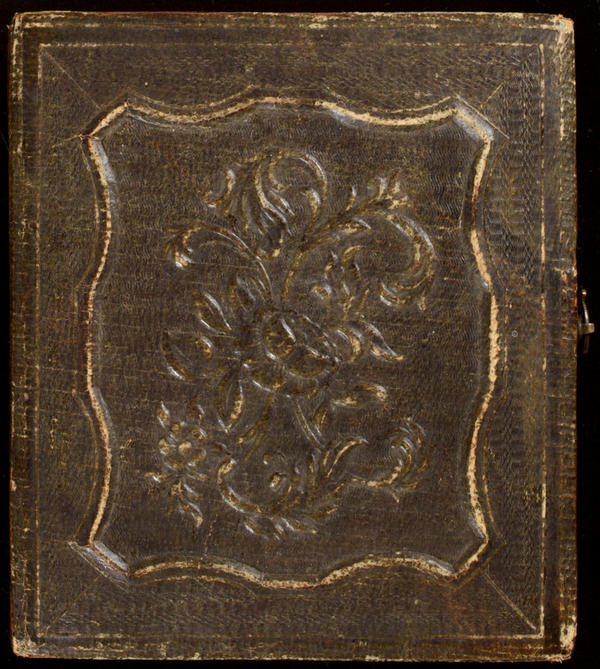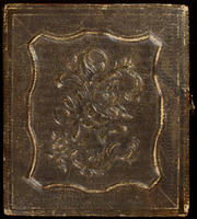 Case: Leather. A floral spray with one rose in the center within a nonpareil like border. No design on verso. |