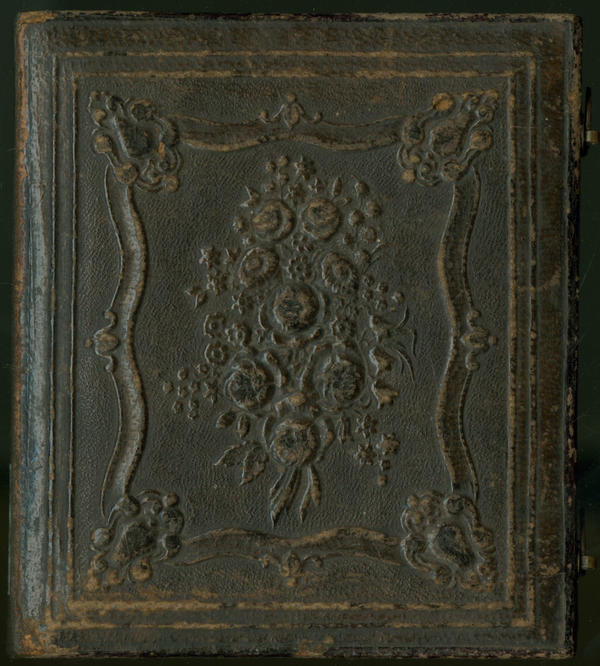 Case: Leather. Mixed flowers within an ornate nonpareil like border. The design of the case is called Bouquet of Flowers and
