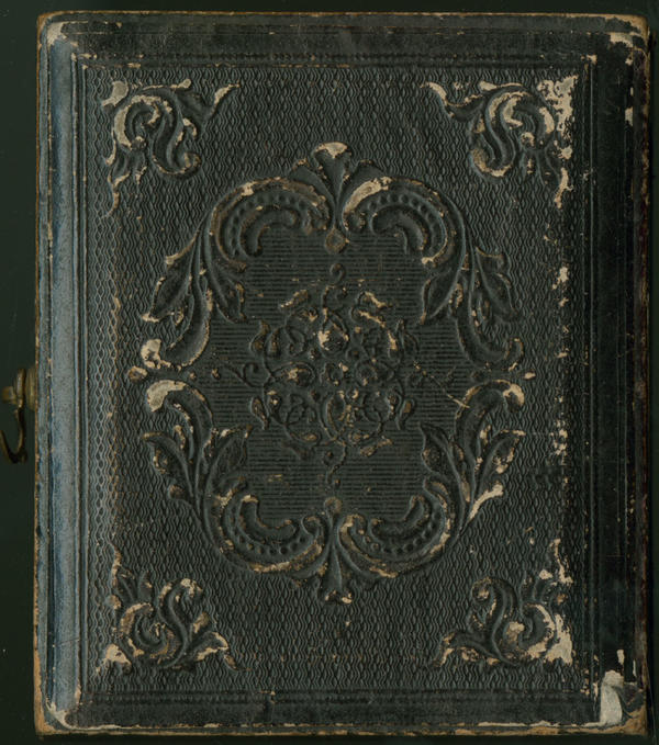 Case: Leather. Central medalion surrounded by curving scrolls. Same design on verso. |