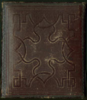 Case: Leather. Mixed flower design in a modified oval. Geometric design on verso. |