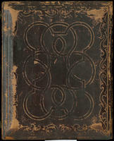 Case: Leather. Spray of flowers with one rose in center within a double elliptical border. Geometric design on verso. Accompanied