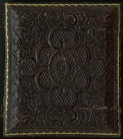 Case: Leather. Oval geometric design surrounded by floral scrolls. Identical design on verso. |