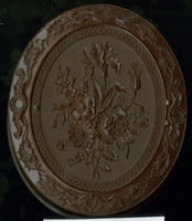 Case: Oval thermoplastic. Spray of mixed flowers and leaves, with one prominent rose. Same design on verso. |