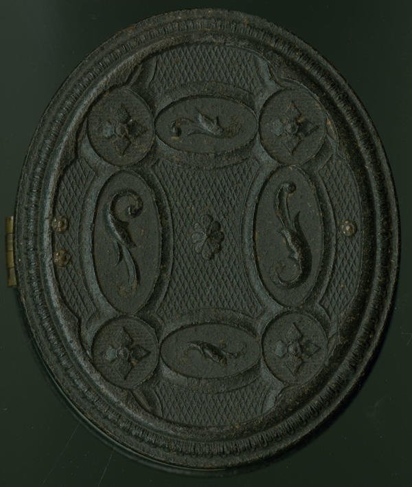 Case: Oval thermoplastic. Geometric design. This design is #3-438 in Nineteenth Century Photographic Cases and Wall Frames