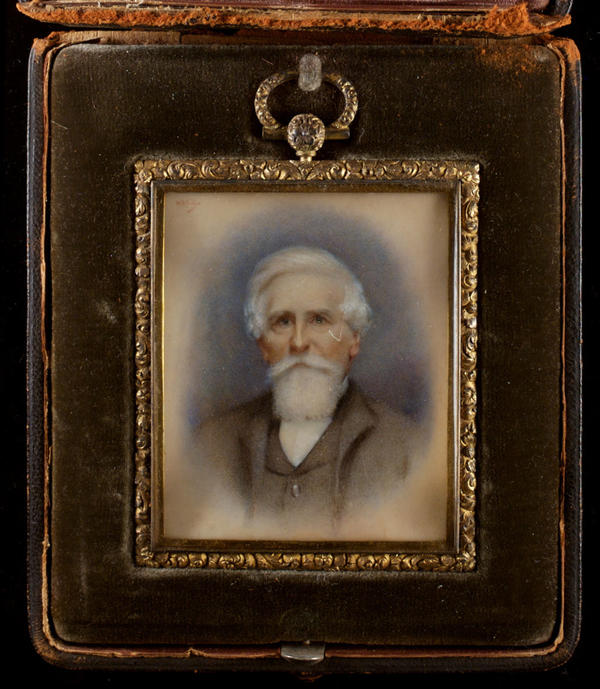 The folding leather case was designed to permit the portrait to stand up or be hung. See Research File for biographical information