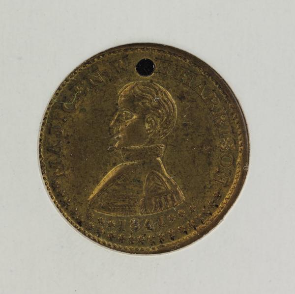 Political campaign medal promoting William Henry Harrison for president and John Tyler for vice president. |