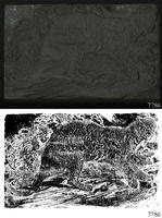 Woodblock for printing an illustration of an unidentified feline, possibly an ocelot. |