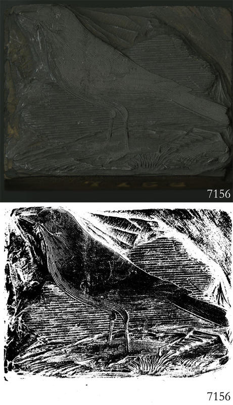Woodblock for printing an illustration of an unidentified bird. |