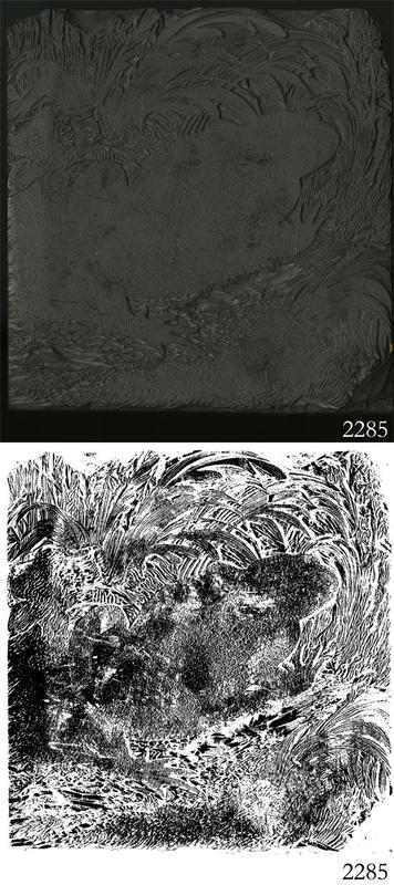 Woodblock for printing an illustration of an unidentified amphibian, possibly a frog. |