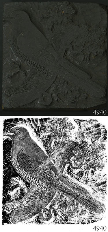 Woodblock for printing an illustration of an unidentified bird. |