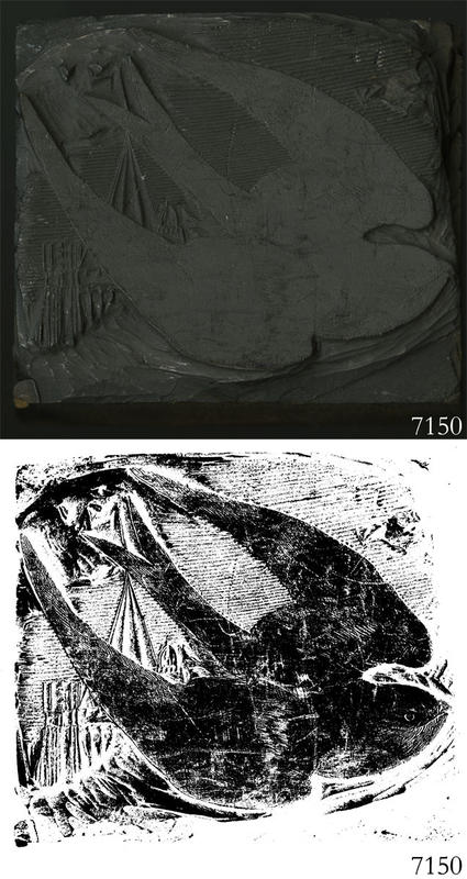 Woodblock for printing an illustration of a swallow. |