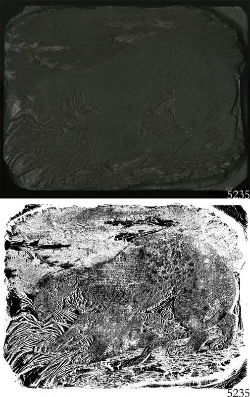 Woodblock for printing an illustration of a leopard. |