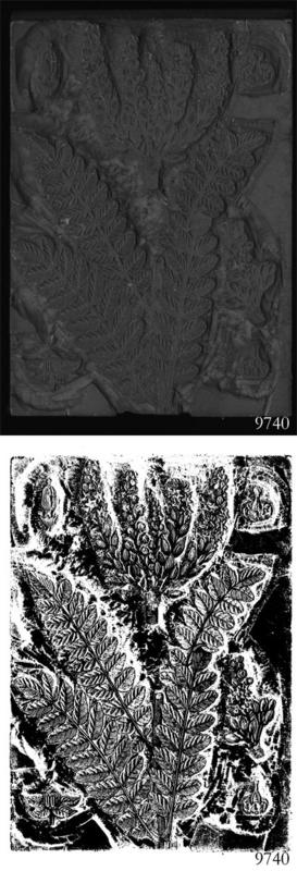 Image of stylized ferns and flowers, possibly lilacs. |