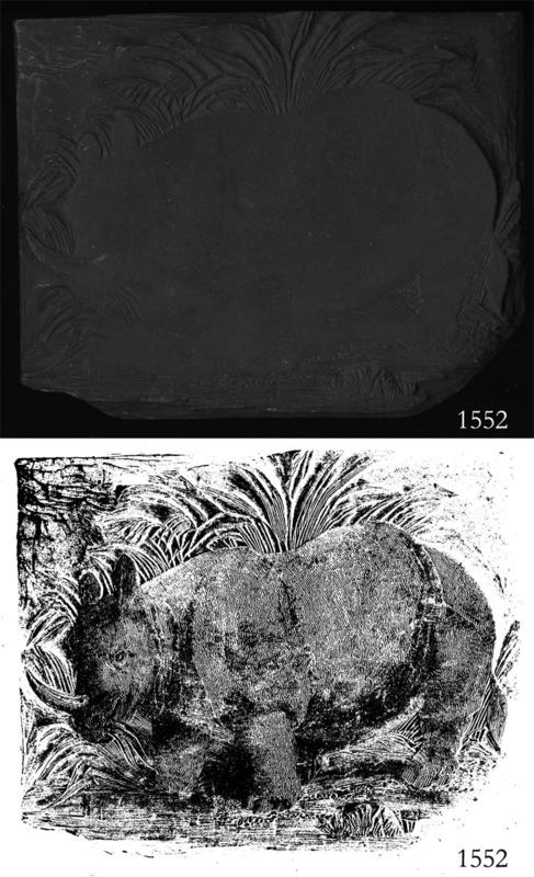 1 wood block ; 6.3 x 7.9 x 2.3 cm. |