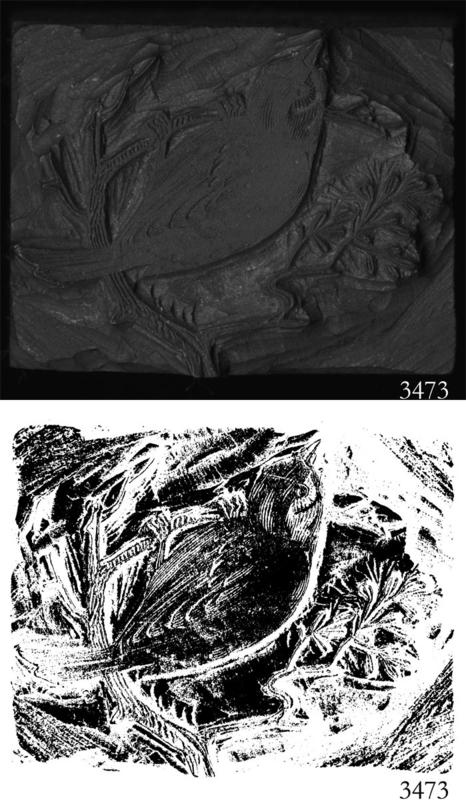 Woodblock for printing an illustration of an unidentified bird. |