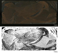 Electrotype for printing an illustration of an unidentified bird, possibly a finch. |