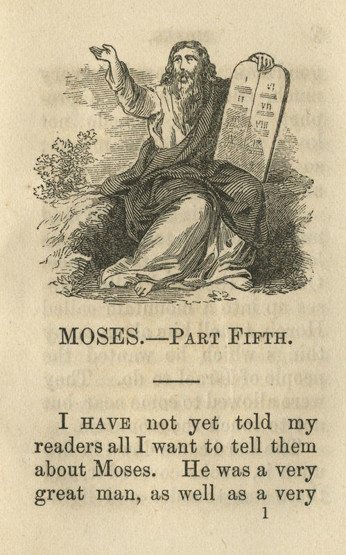 Illustration also appears in Moses, Child's home library series no.2 (Philadelphia, between 1857 and 1870?), p. 1.