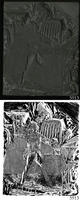 Woodblock for printing an illustration of a man in distress. |