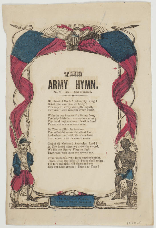 b. Title: "Army-Hymn"; [without "Air";] print Nesbitt and Co. Double-line border; blue ink; hdpc. Liberty with flags and bust
