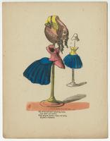Two tailor's dummies have bustles, wigs and other accessories attached to them. The valentine suggests that these accessories
