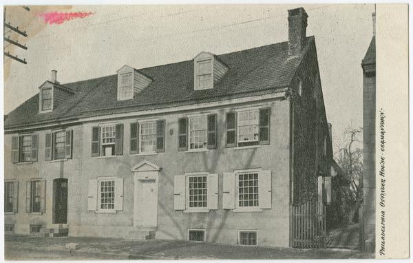 Exterior view of Ottinger House, with a partial view of property to the north. Built circa 1781 by Christopher Ottinger, a Revolutionary soldier who became a master coach maker after the war.
