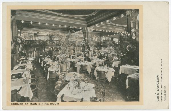 Cafe L'Aiglon, corner of main dining room, Chestnut and Fifteenth Streets, Philadelphia. [graphic].