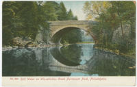 Depicts the stone bridge spanning Wissahickon Creek leading to Springfield Avenue. Built in 1832 and rebuilt in 1915. Also referred to as the Springfield Avenue Bridge.
