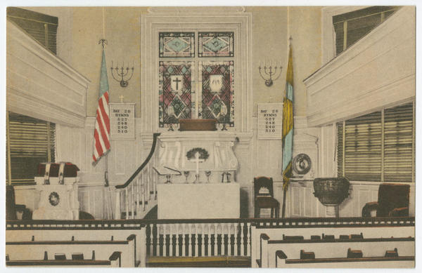 Contains exterior views of the oldest church in Pennsylvania, built 1698-1700 after designs by John Harrison I and Reverend Andrew Rudman. The wings were added 1703-1705 and the tower circa 1733. Also includes an interior view of the sanctuary.