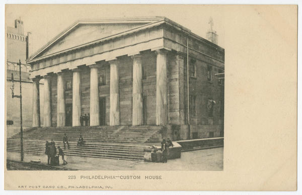 Depicts the U.S. Custom House built 1819-1824 after designs by William Strickland as the Second Bank of the United States. From 1844 to 1932 the building housed the Philadelphia Custom House.