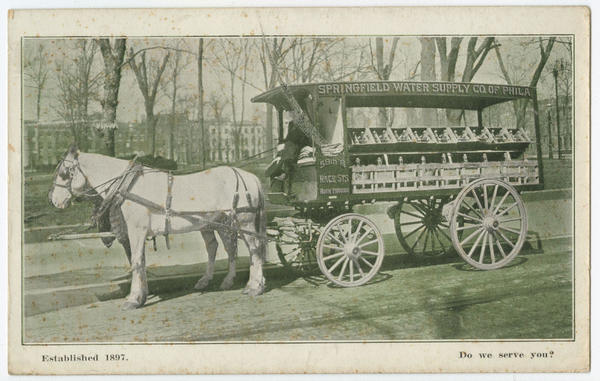 Advertisements depicting horse drawn Springfield Water Supply Company wagons. Springfield Water Supply Company established in 1897.
