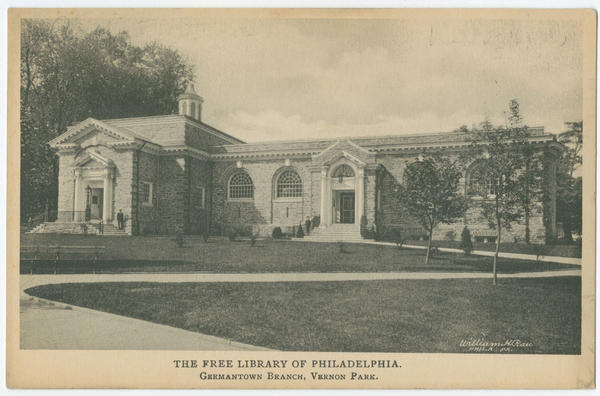 Vernon Park was formerly a private residence purchased by the City of Philadelphia in 1892. Andrew Carnegie's donation enabled the city to construct a Free Library on the property in 1906.