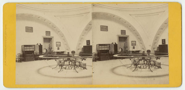 Interior view showing relics and furniture belonging to Stephen Girard in Founder's Hall, constructed 1833-1847 in the Greek