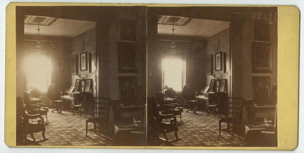 Interior views of John McAllister Jr.'s residence on West Penn Square showing bedrooms, parlors, the main staircase, and the