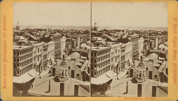 Bird's eye view of Philadelphia, east from State House steeple. [graphic] / James Cremer, photographer and publisher, 18 South