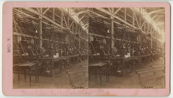 Interior views of 1874 Exhibition of American Manufactures at the Franklin Institute (13-17 South Seventh Street), showing