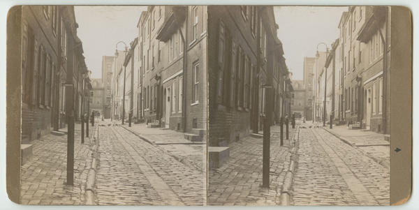 Elfreth's Alley, looking west towards Second Street. Philadelphia, Pa. [graphic] / Taken by Fred S. Lightfoot.