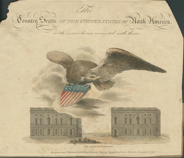 [Title page for Birch's country seats of the United States containing a view of the unfinished capitol building in Washington, D.C.] [graphic] / Designed and published by W. Birch enamel painter, Springland near Bristol, Pennsylva. 1808.