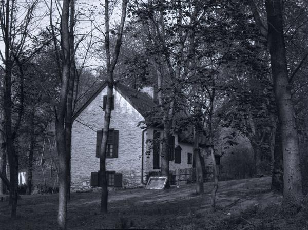 Oblique view of the side and front elevations of the house where David Rittenhouse was born in 1732. Built circa 1770 by William Rittenhouse as part of a complex occupied by the first paper making business in the colonies.