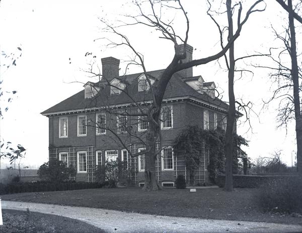 Exterior view of front facade of Stenton. Built 1728-1734 by James Logan. The house remained in the Logan family until the early 20th century when the city acquired the property in 1910.