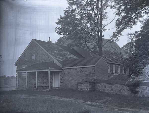Oblique view of the east and north elevations of the Radnor Friends' Meeting House, constructed in 1718. Part of the eastern end of the building was later constructed and used as a school house.