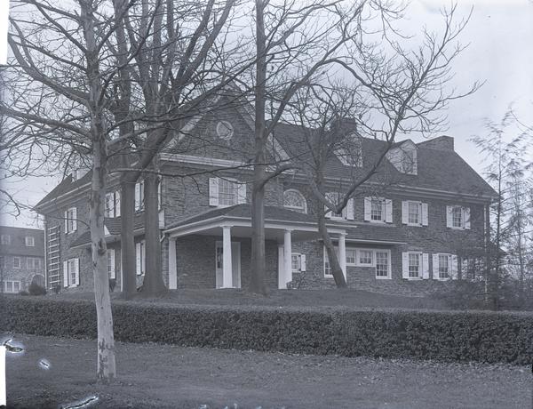 Exterior view of Wynnestay, the original portion of which was erected in 1689 for William Penn's personal physician, Dr. Thomas Wynne. The lateral western extension was built circa 1700 by Thomas Wynne's son, Jonathan Wynne.