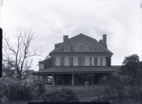 View of house built circa 1748 and moved to Fairmount Park in 1926-7. Country seat of the Paschall-Morris family for five generations.